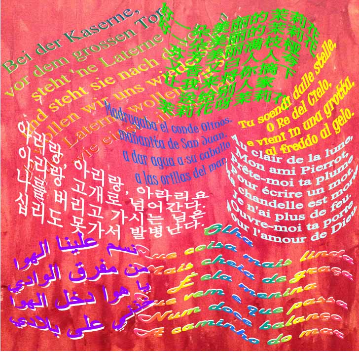 Where there is a language, there are songs. While not all languages spoken in the world have got written forms, every single language is, at some point or another, used in singing. In a world that is becoming increasingly connected, contact between different cultures, their languages, and their musics is more common that it has ever been.
